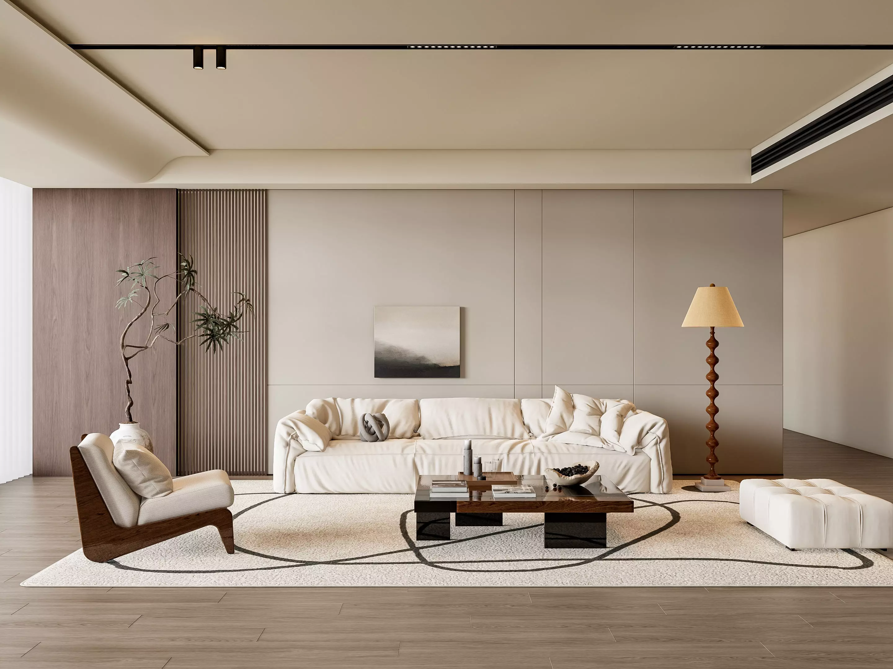Enhance your design projects with this elegant 3D model set of a living room interior. This collection features a meticulously crafted layout, including high-quality textures and detailed elements such as a stylish sofa, coffee table, armchairs, media console, rugs, lighting fixtures, and decorative accents. The design balances comfort and sophistication, making it ideal for visualizing contemporary, classic, or minimalist living spaces. Each piece is designed with both aesthetics and functionality in mind, offering a cozy yet refined atmosphere. Fully customizable, you can adjust colors, materials, and furniture arrangements to fit your specific design vision. Compatible with popular 3D software, this model set ensures seamless integration into your projects. Perfect for interior designers, architects, and 3D artists, this living room set helps you bring to life stylish and inviting residential spaces. Whether you're designing a modern apartment, a luxury home, or a cozy family room, this 3D model set provides the essential elements to create visually stunning and functional living areas.