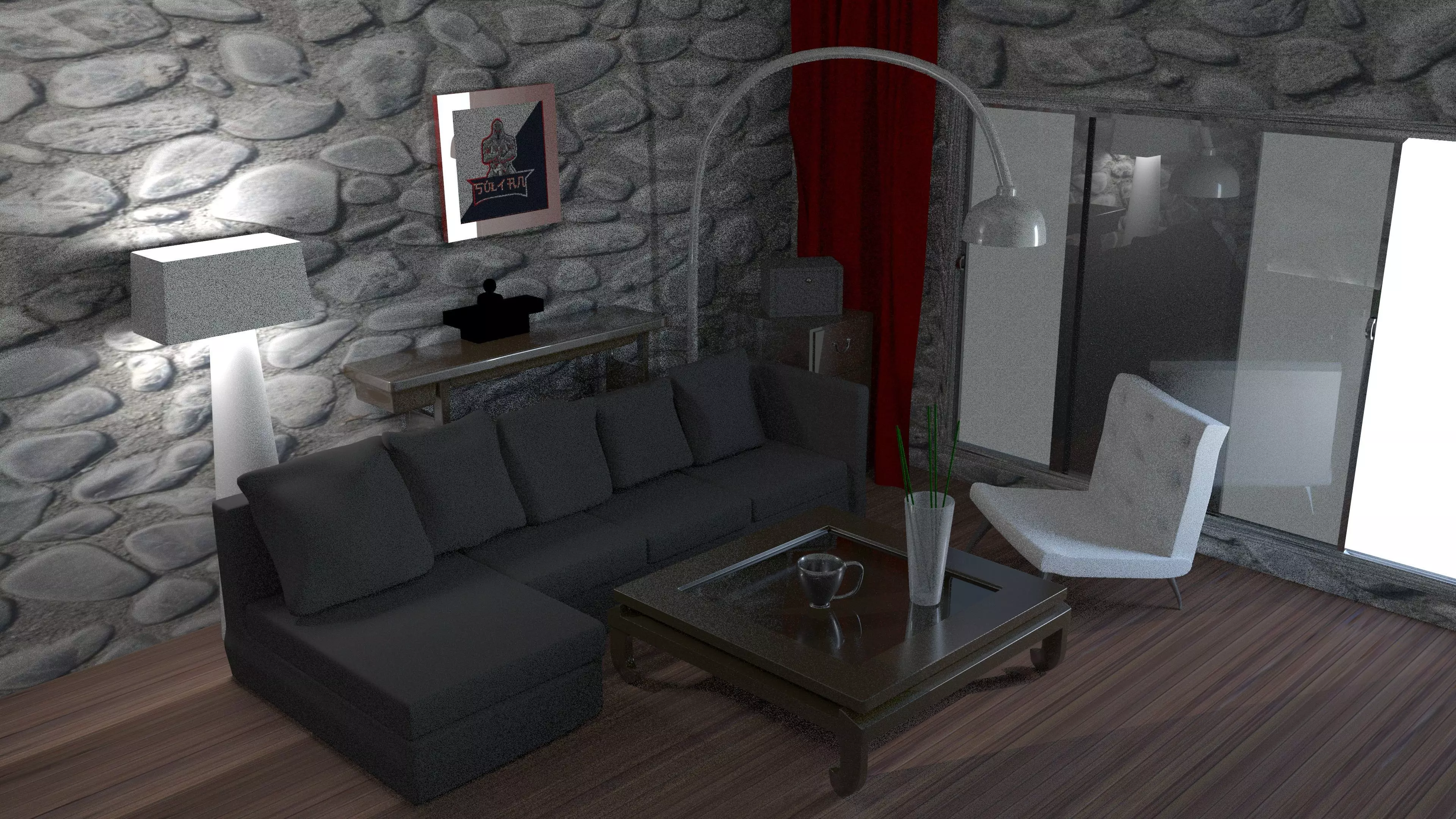 Interior Living Room, Sofas & Couches, Glass Table, Drawers, cup, flowers, glass window, lamp, Chair. You can easly edit any model like any shape no any limits.