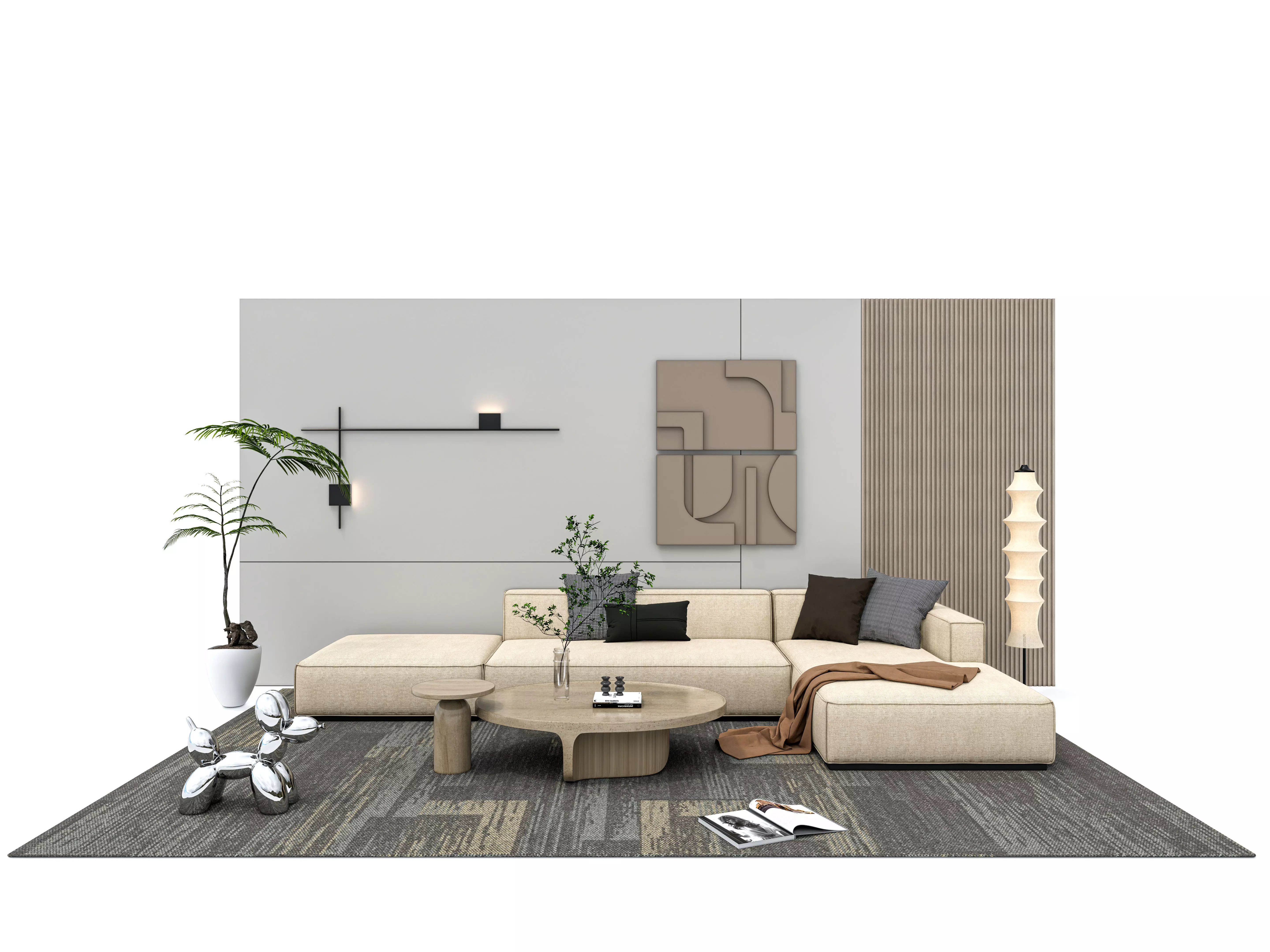 This model showcases a sophisticated living room setting with contemporary furniture pieces that embody style and comfort. The attention to detail in each element, from sleek sofas and trendy coffee tables to chic lighting fixtures, provides a lifelike and immersive experience. The meticulously applied textures and materials breathe authenticity into your 3D scenes.