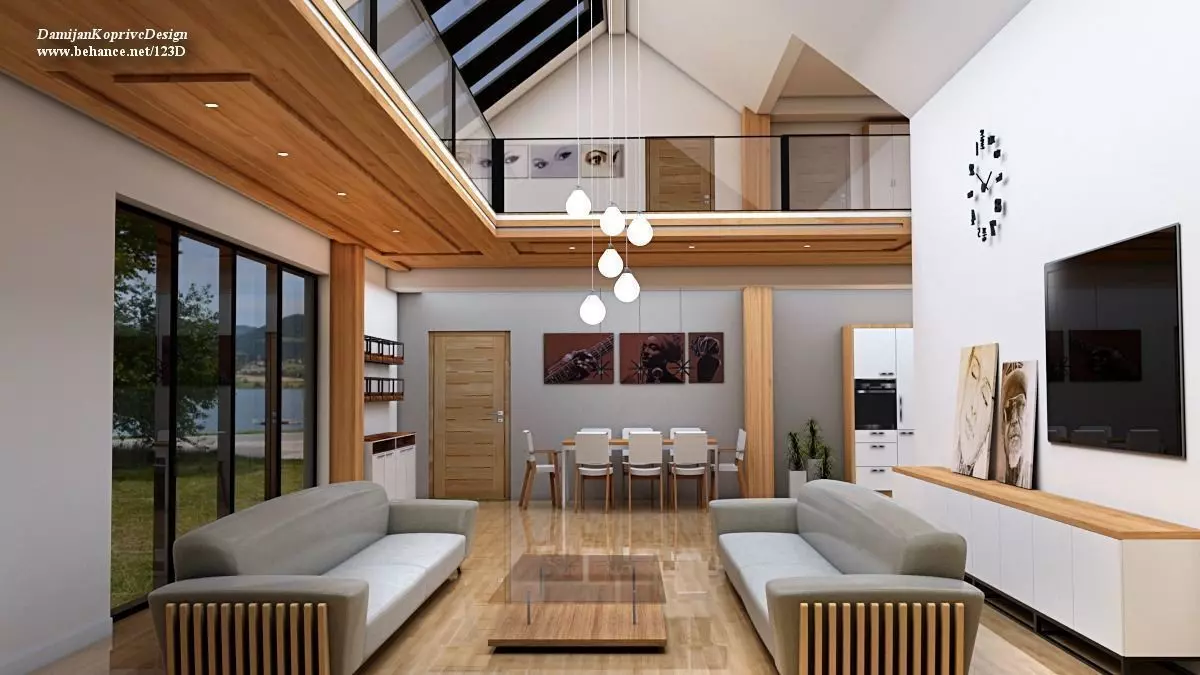 Modern designed house interior/living room on two floors with unique design glass roof and loft .Unique designed,modern,highly detailed model with lot of useful 3D models and furniture in it.Model contains house with all the furniture in ,living room,sofa,tv set,table dining..( custom made table),partial kitchen . Also feature a custom design half glass roof .. and paintings from my friend. Suitable for sea site area as for the mountain areas. Model is done with sketch up and rendered with v-ray. All textures appliances and furniture equipment is in high resolution,have been checked and are included in scene.Textures are compressed in zip file.Model is easy to manipulate and ready to render with v-ray.
