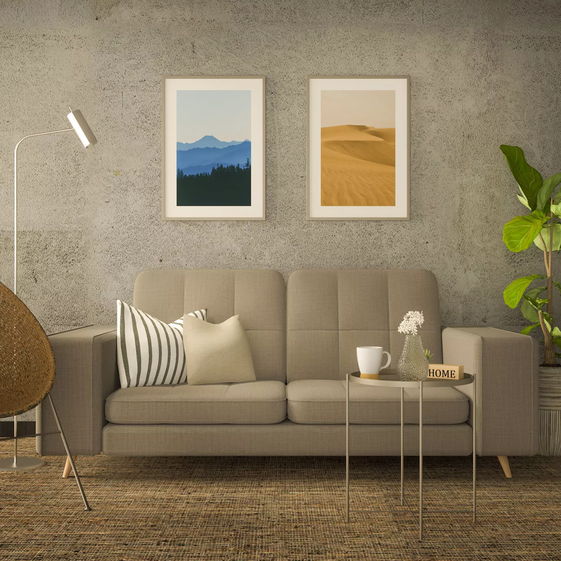 ENG: Living Room Model with Sofa, Coffee Table, Lamp, and Artwork included modelled in SketchUp.All articles included are self-create.This SketchUp model showcases a living room with all the essential elements to create a cozy space. The model features a comfortable sofa, a stylish coffee table, a floor lamp, and several artworks that add an artistic touch to the room. Perfect for architectural visualizations, interior design, and related projects.