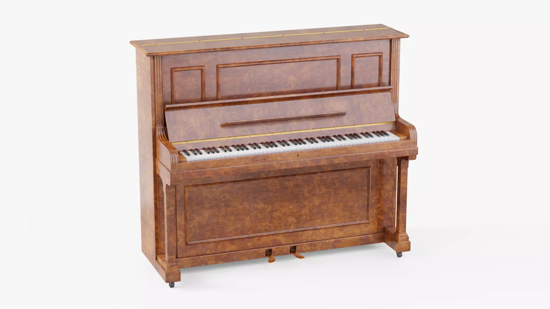 High quality, photorealistic upright piano model for interior scenes, based on real piano references and measurements. The model is fully textured and ready to use.Subdivision ready topology allows for both detailed close up renders and optimized performance as background element.Hope you like it!