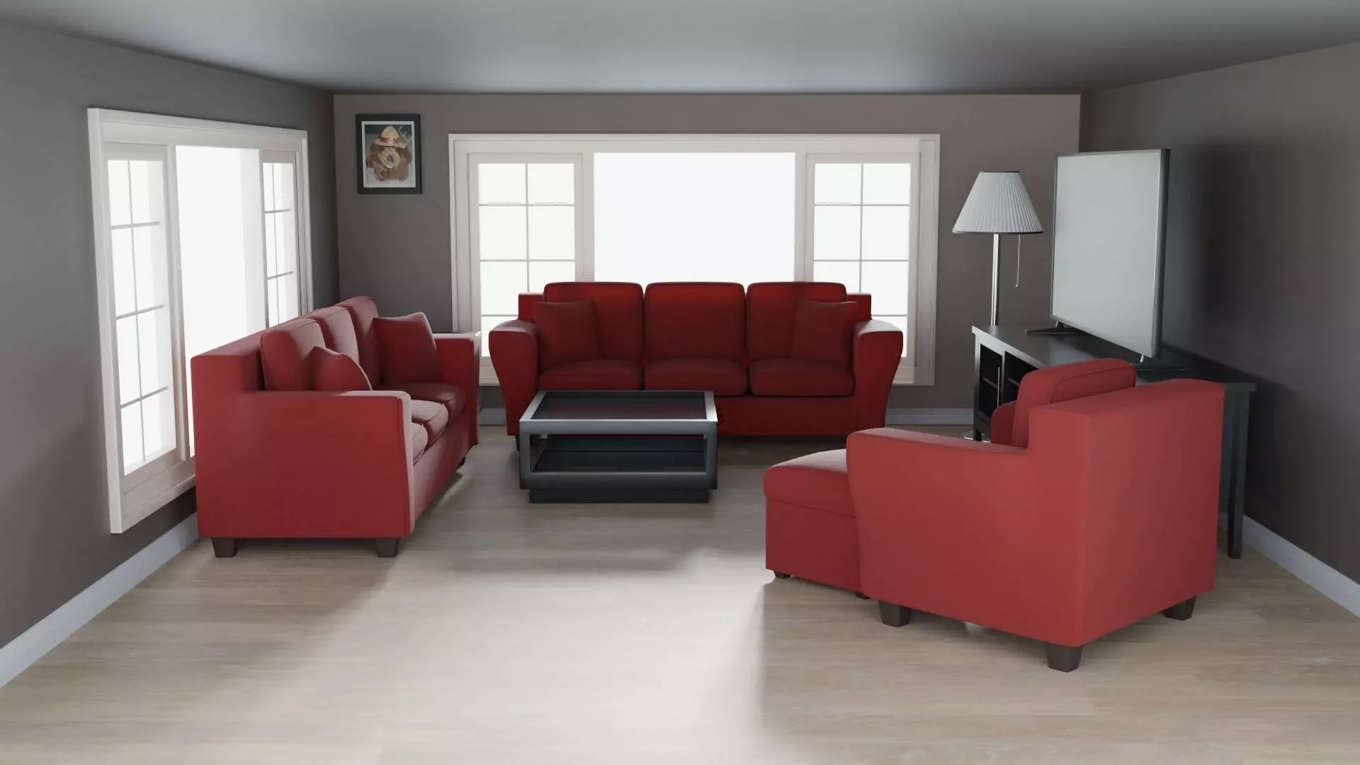 Modern living room scene that was created using Blender. This is a custom scene that uses modern living room models that I have created. It uses select models from my living room asset pack and my modern tv set. The window frames, baseboard, and room body objects were made just for this scene. Everything you see in the product images is included with objects, cameras, lights and node setups pre-setup in the native blend file.