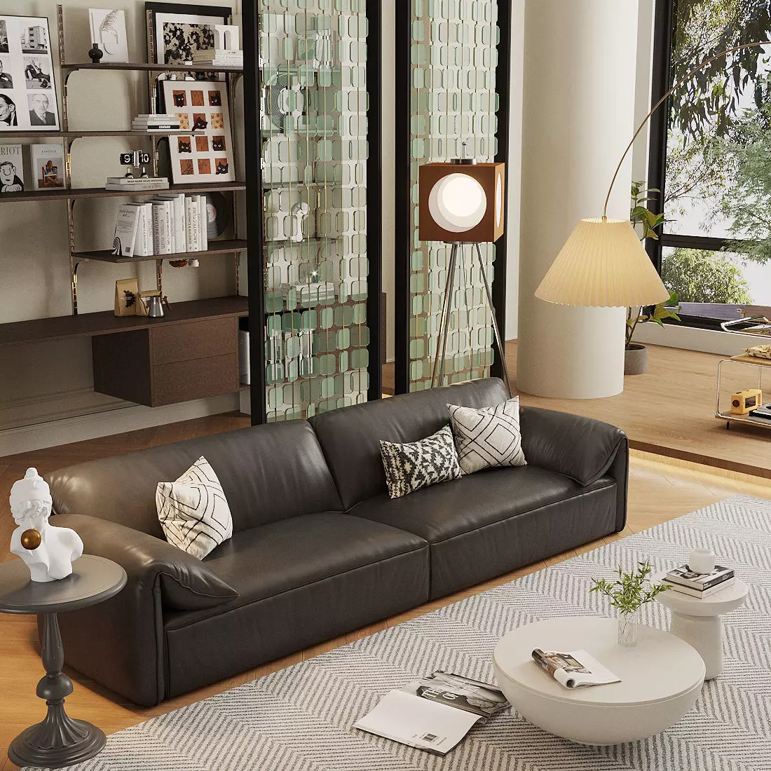 The model has material settings that define how surfaces look (color, shine, transparency, etc.).