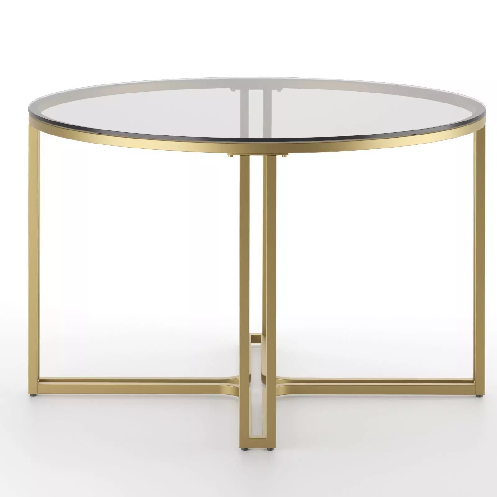 The Modrn Glam Marni Glass Dining Table is a stunning piece of furniture that is perfect for any modern dining space. The table is made of high-quality tempered glass with a polished finish that gives it a sleek and sophisticated look. The glass top rests on a geometric base made of sturdy metal with a gold finish that adds a touch of glamour to the overall design.
