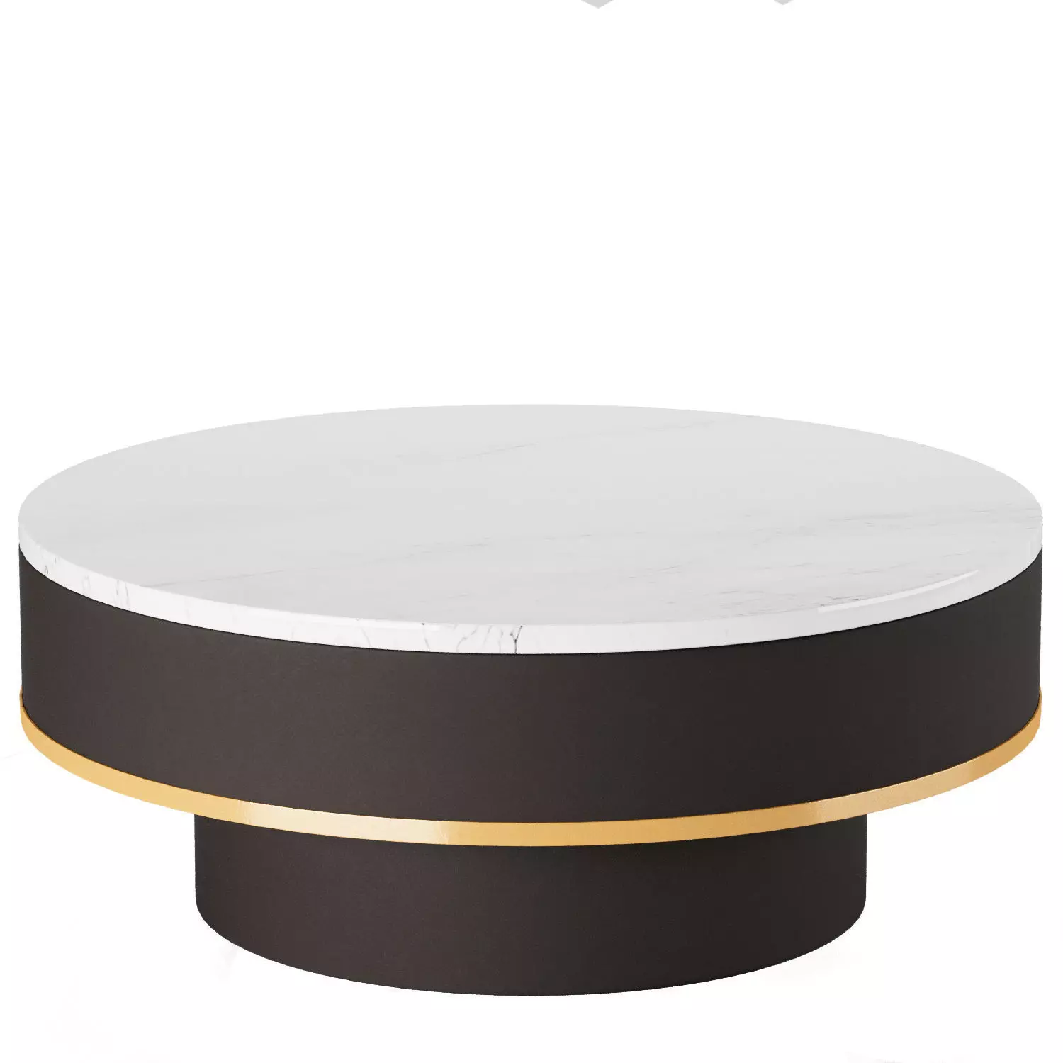 Discover the Nolloth Coffee TableThe NOLLOT coffee table is architectural grace and discreet luxury. The double-tiered cylindrical MDF base with different diameters creates a dynamic silhouette, where one tier is accentuated by a gold-plated edging that adds a delicate shine. A round marble top with a natural vein pattern completes the composition, contrasting with the geometric rigor of the base.