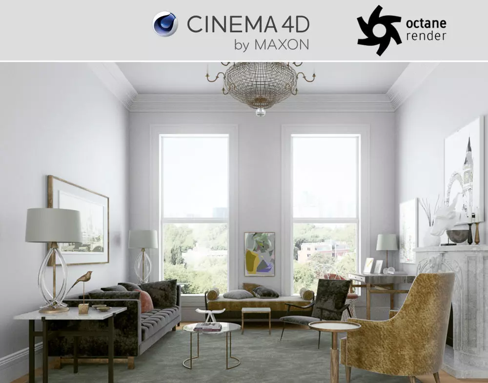 Octane - C4D Scene files - Living Room Interior 3D model - Full CGI
