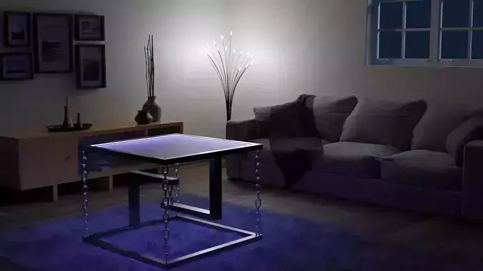 A fun coffee table that looks like it is floating, complete with frosted glass top and LED lights around the edges and underneath. The perfect table for a modern home or office.