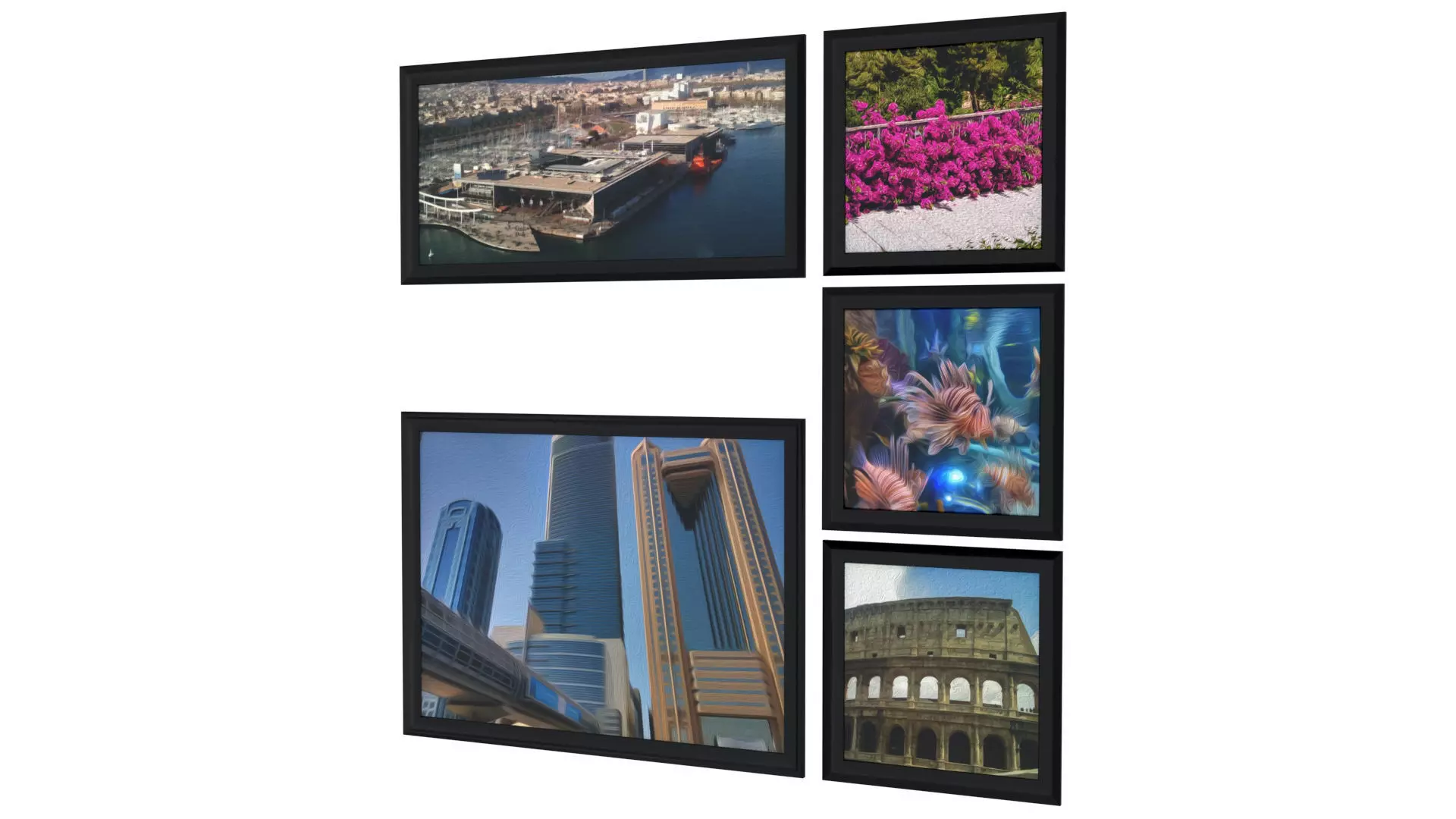 Five oil paintings with sizes: 120x60 cm, 120x90 cm and 60x60 cm