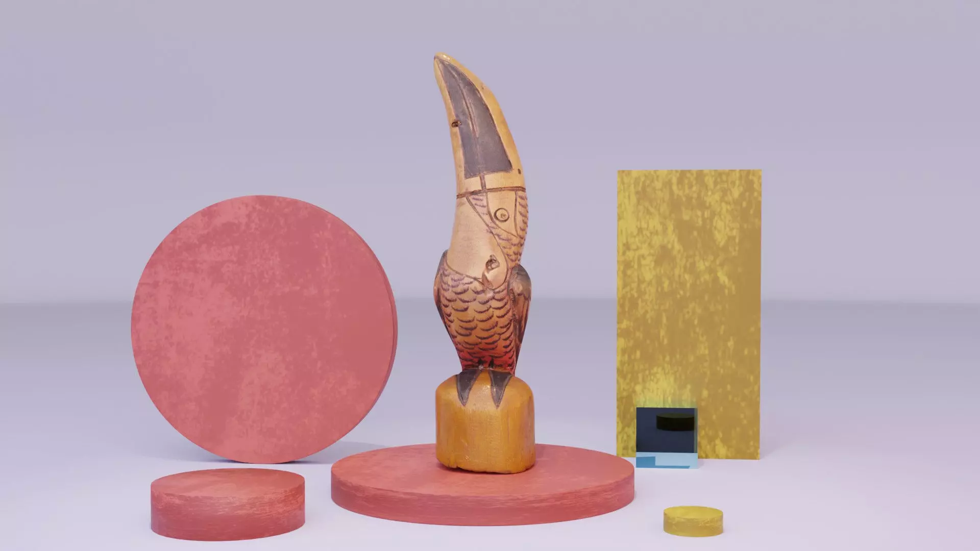 This is a photorealistic 3D model of the wooden toucan parrot.