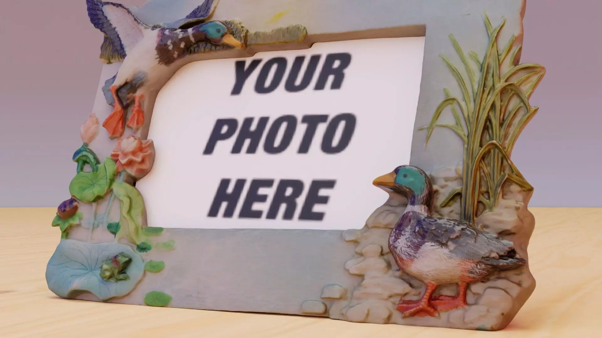 Photo frame witch duck figures high-poly 3D model
