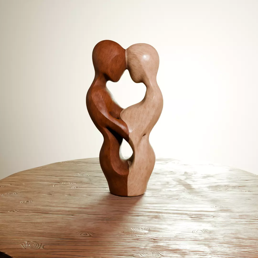 This 3D model represents an abstract sculptural form composed of two intertwined human-like figures, symbolizing unity, balance, and connection. The flowing silhouettes and smooth transitions between the forms create a timeless decorative object suitable for modern and minimalist interiors.