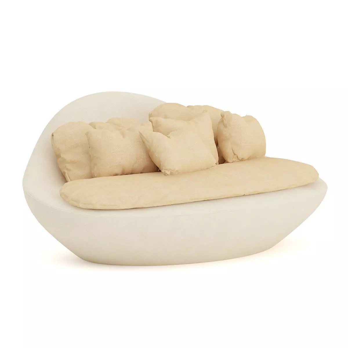 3d model of round fabric sofa with beige pillows. Compatible with 3ds max 2010 or higher and many others.