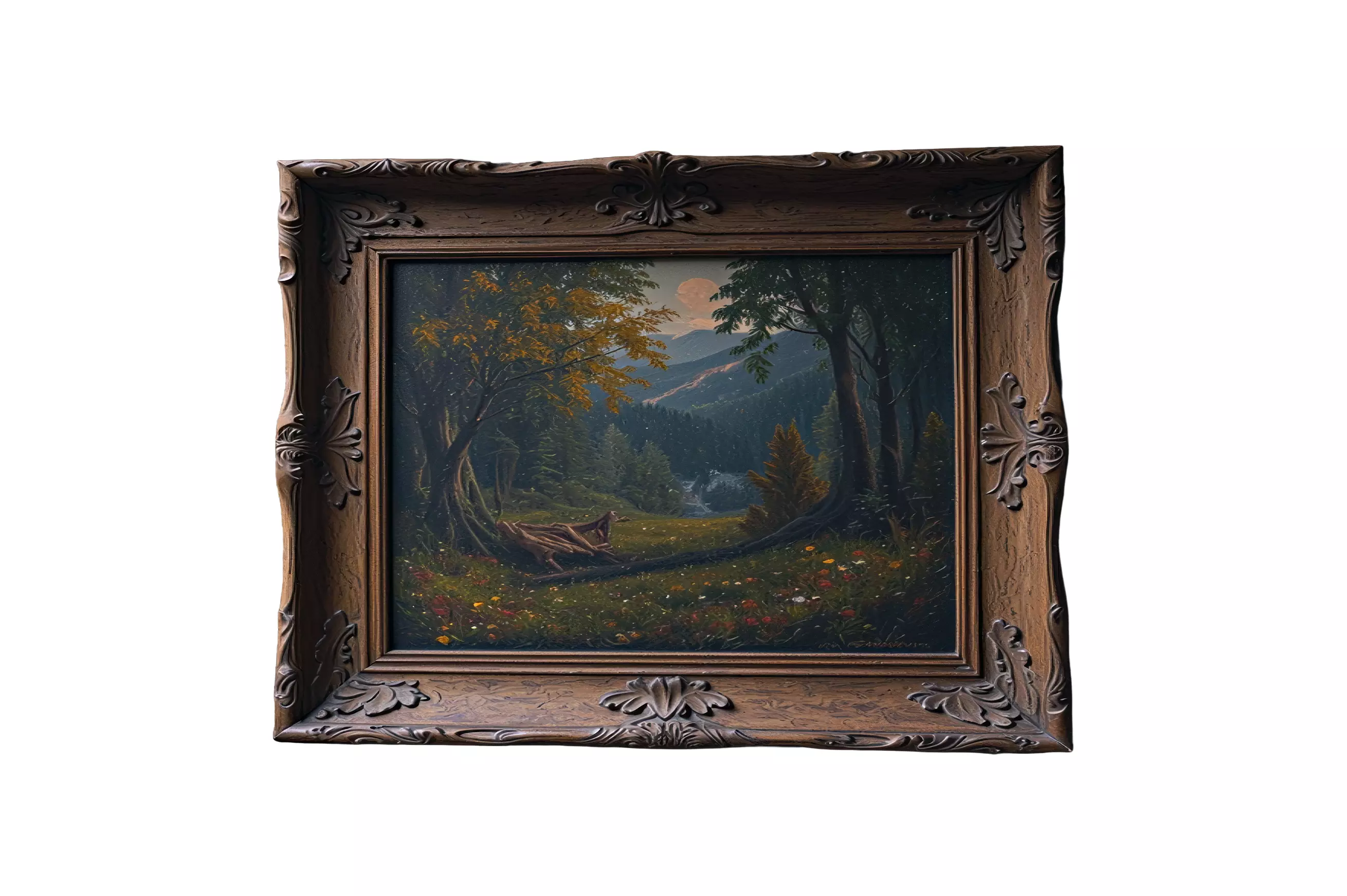 Rustic painting with handcarved wood frame Low-poly 3D model
