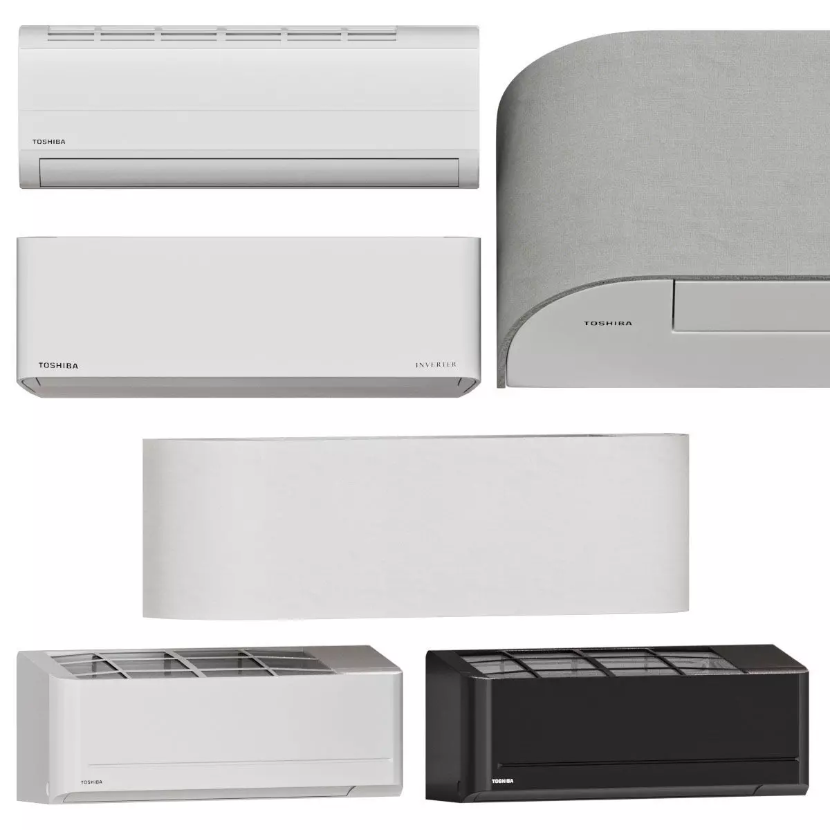 Name: Set of air condition ToshibaFormat: 3Ds Max 2017Export: OBJRender: Corona (9) Vray (4.x)Polys: 96476Verts: 49011New 2021 - designer air conditioner Toshiba Haori RAS-10N4AVRG-UA/RAS-10N4KVRG-UA has an exquisite appearance combined with high technical performance. Energy efficiency class A+++, indoor unit noise level from 19 dB(A) and built-in Wi-Fi control provide this air conditioner with undisputed leadership in the segment of designer air conditioners.The Toshiba RAS-10N4AVRG-UA/RAS-10N4KVRG-UA inverter controlled air conditioner features high energy efficiency, low noise level and the ability to operate in heating and cooling mode down to -15 °C.