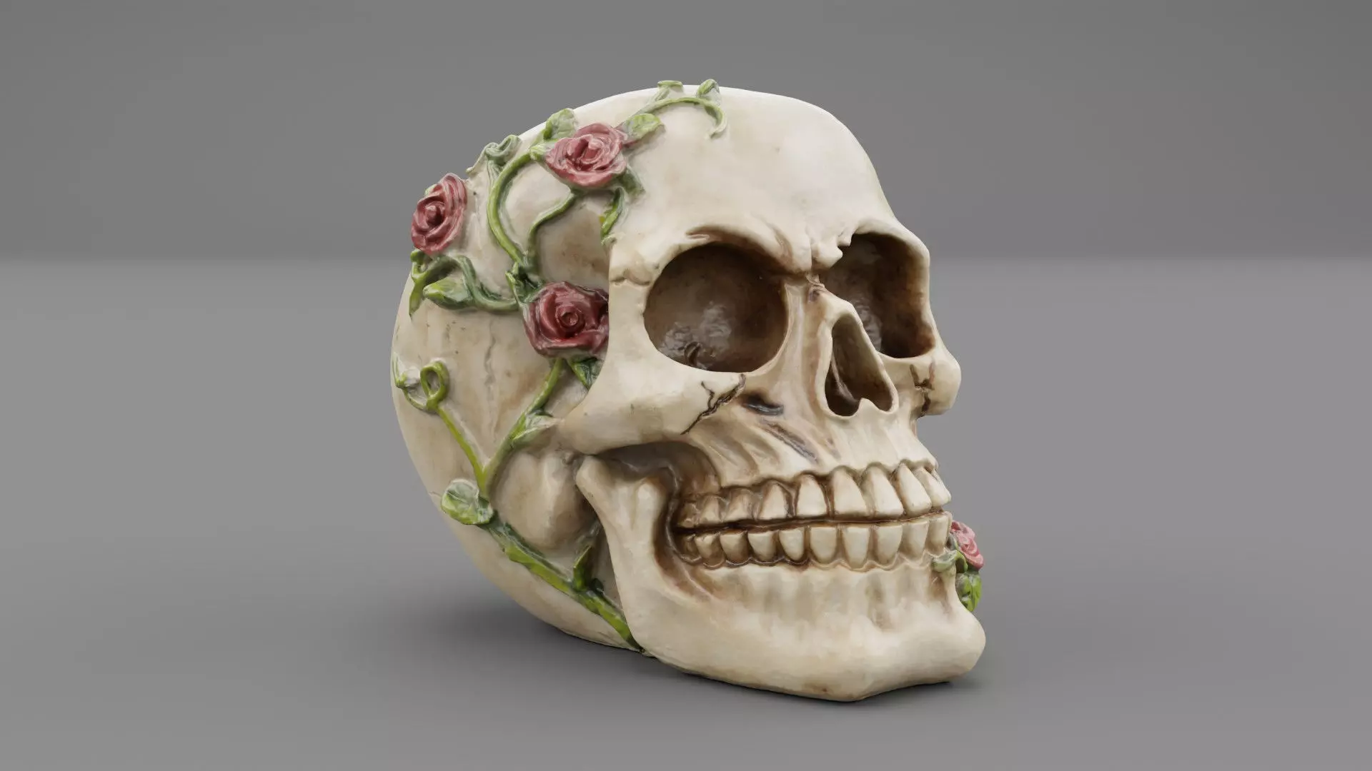 This is a photorealistic high-poly 3D model of the Skull with roses.