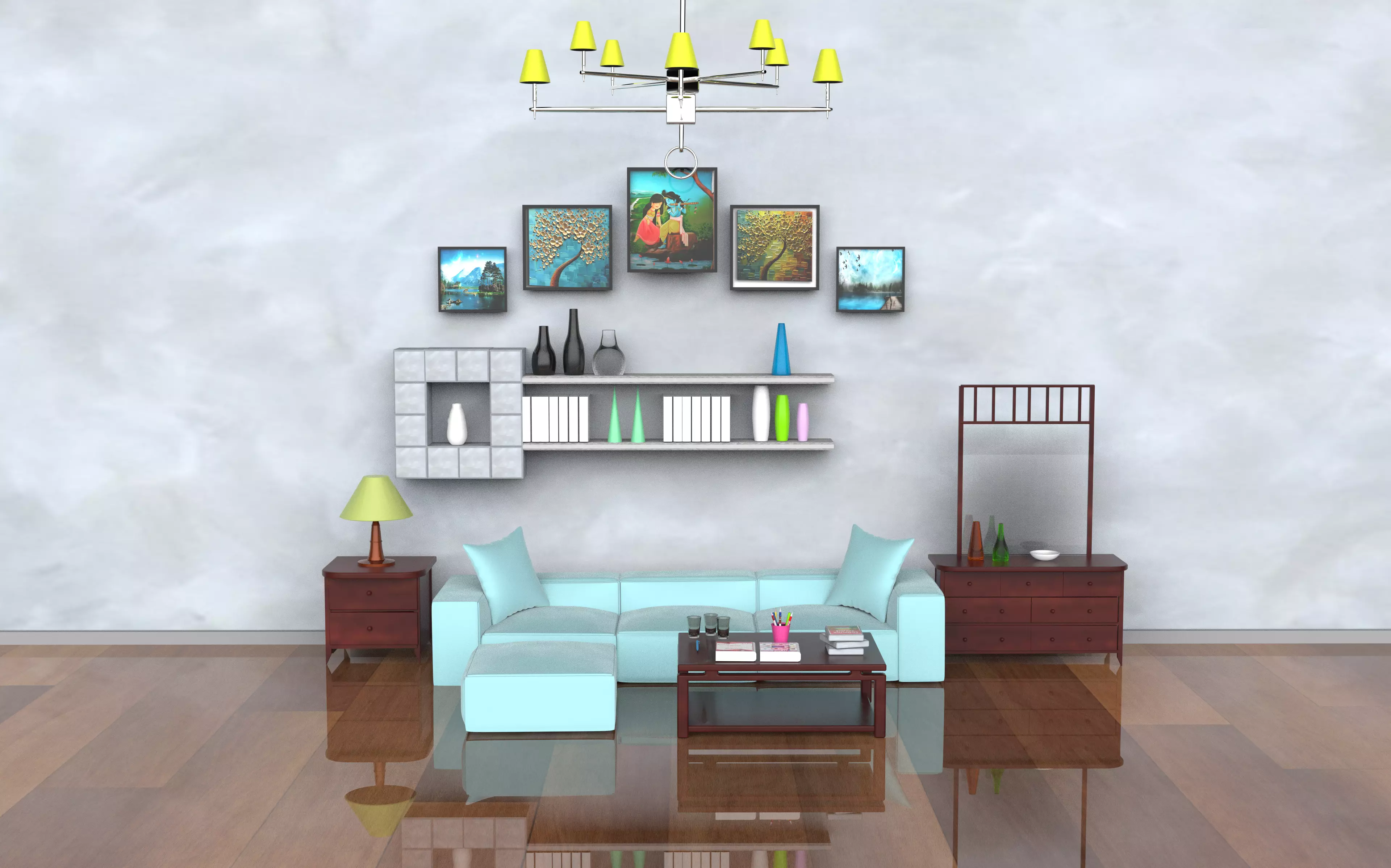 The model has material settings that define how surfaces look (color, shine, transparency, etc.).