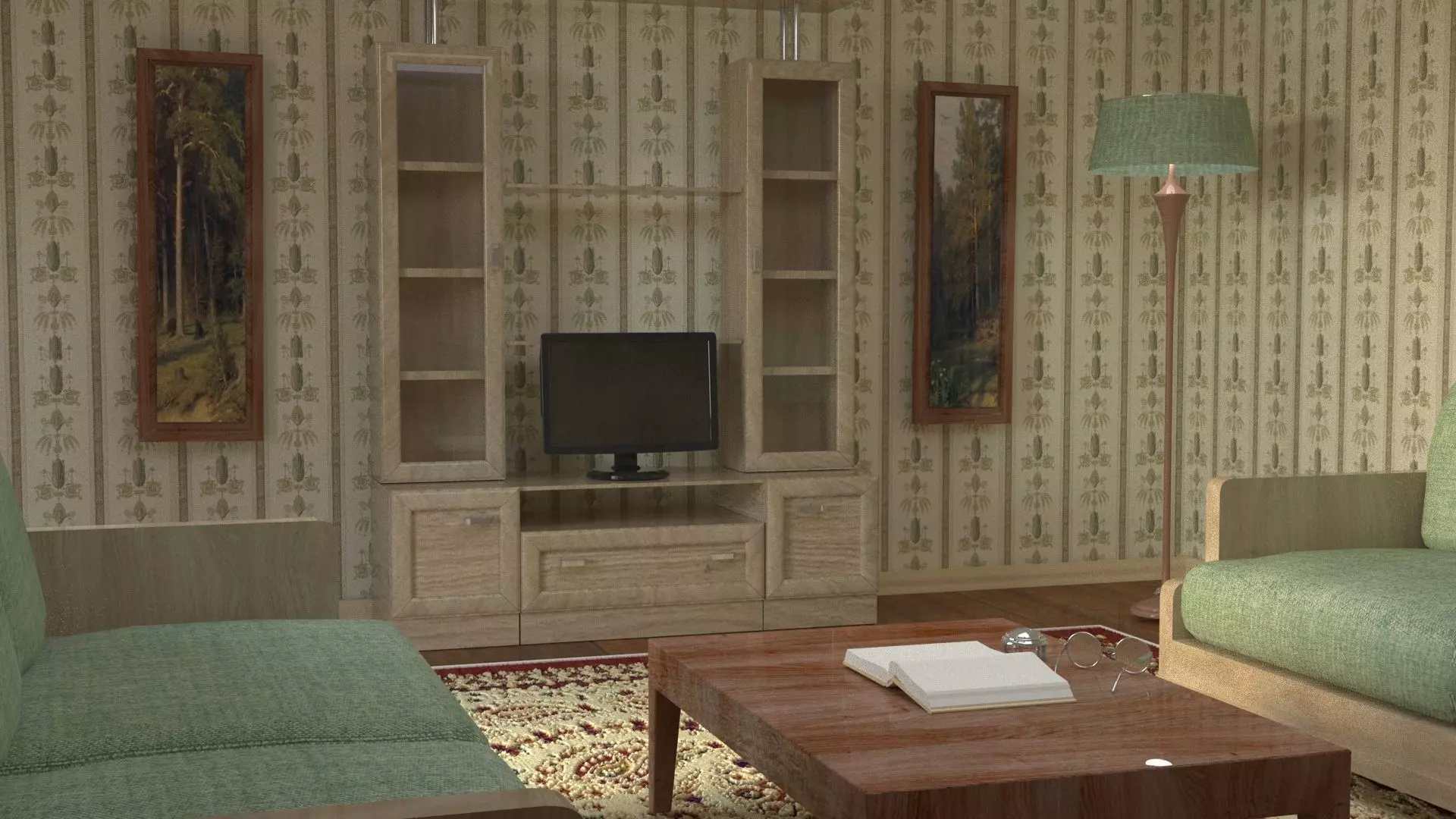 The model has material settings that define how surfaces look (color, shine, transparency, etc.).