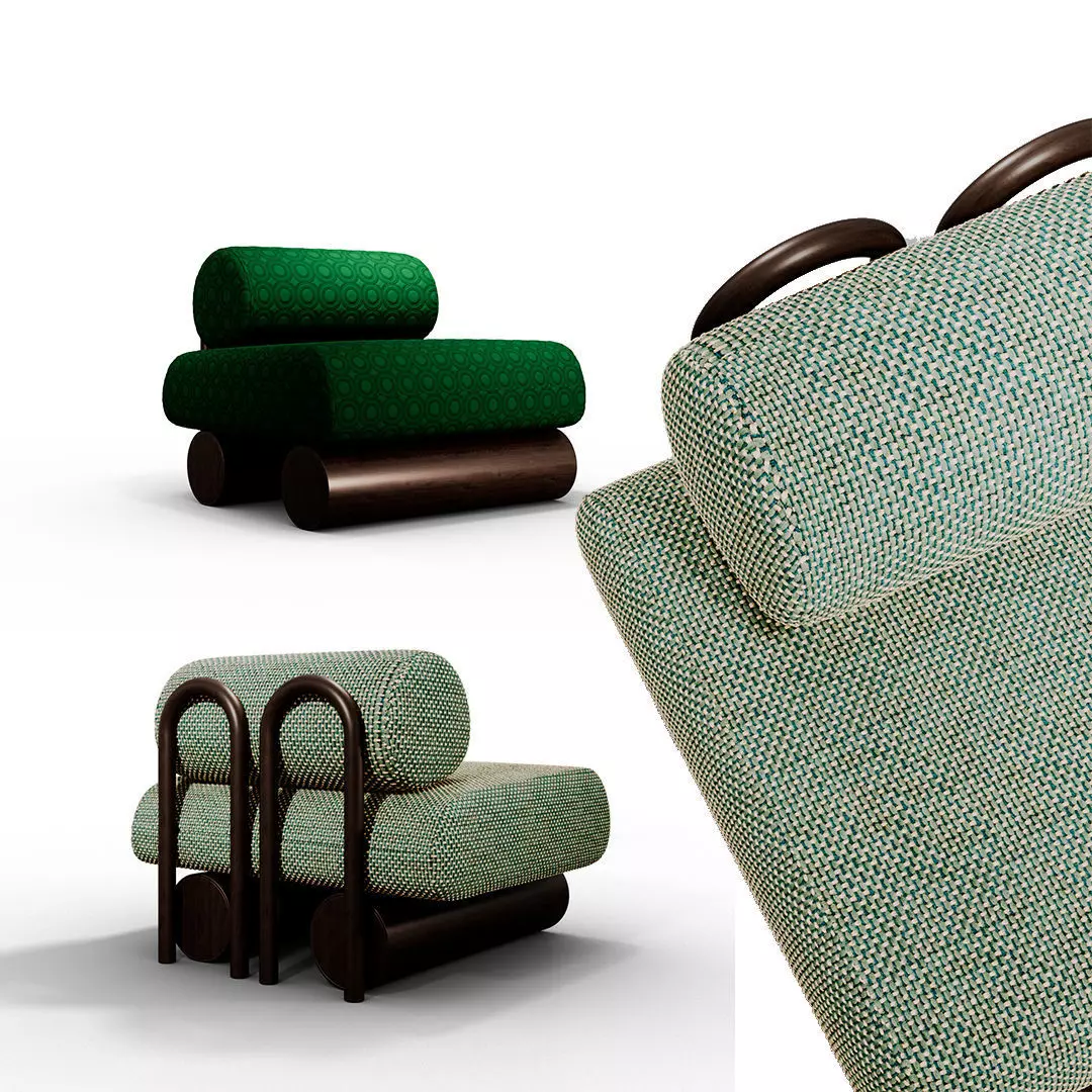 • Postmodern sculptural design with cylindrical backrests