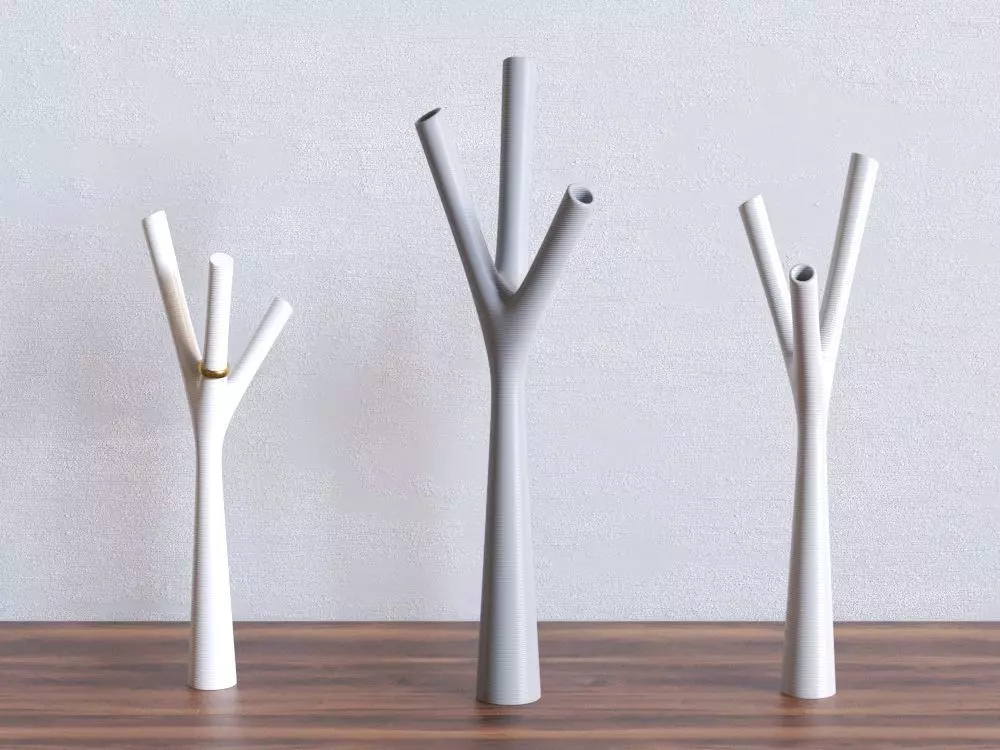 Units are in millimeters. The MAX format (3ds Max 2018 with V-Ray 3.6 inside ZIP file) contains the rendered scene with materials, lights and camera as shown in the Thumbnail (it includes textures for the wall and table, and 1 HDR). The other formats contain only geometry (2 items): the bigger Tri Branch decor (360mm height, with holes at the end of branches) and the smaller Tri Branch decor (274mm height, with no holes at the end of branches).The model contains clean topology (only quads) as shown in the second image.