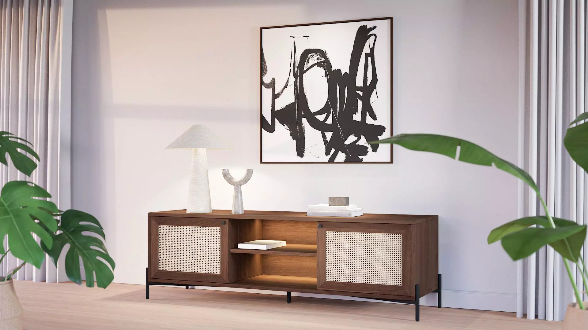 You get a realistic 3d model of lowboad vienna with the deco you see in the white studio renderings.