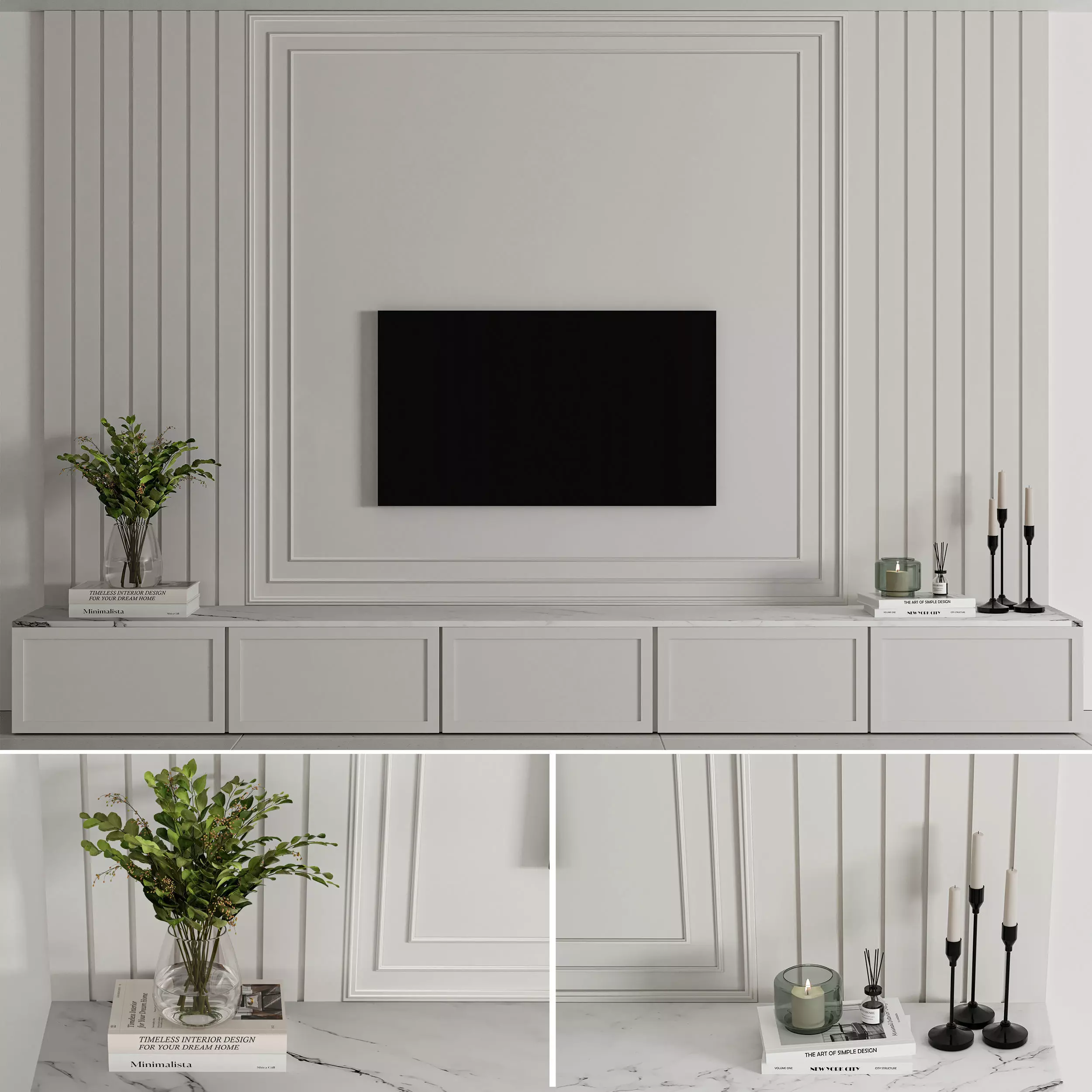 Neoclassical TV Wall with decorative set
