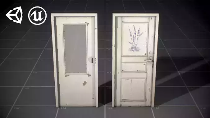 • 2 color variations of used soviet doors , poly-count - 386 and 1058 triangles.