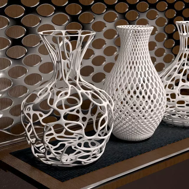 Vases 3d print four on wooden shelf 3D model