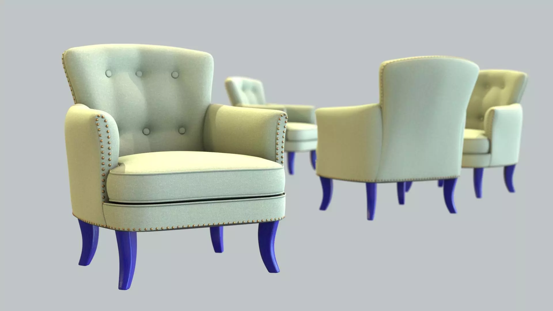 Vintage Chair Sage Green Cotton Painted NavyBlue Wood Legs 3D model