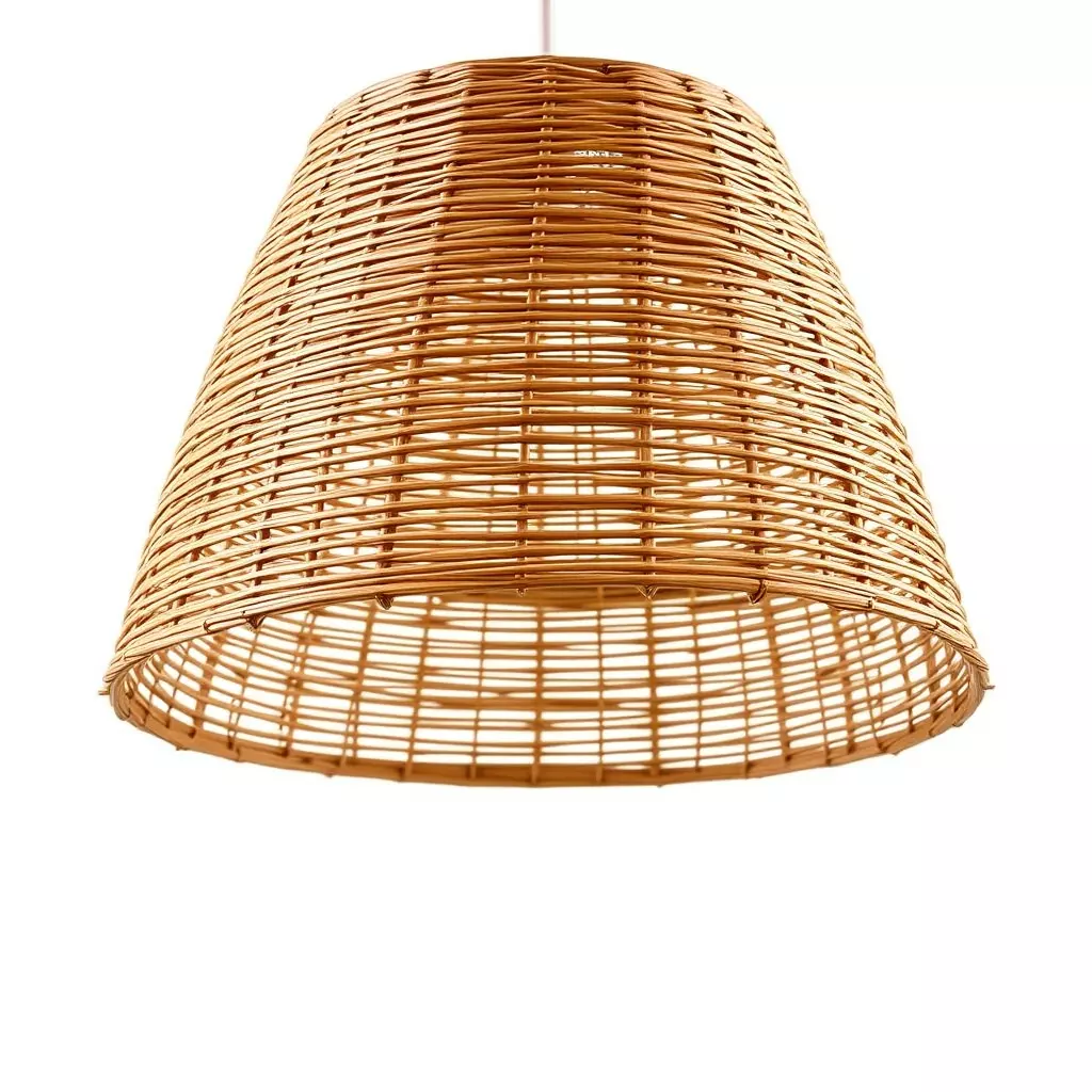 The lamp shade's natural wicker design offers an authentic look, perfect for enhancing cozy living spaces, cafes, or rustic environments.