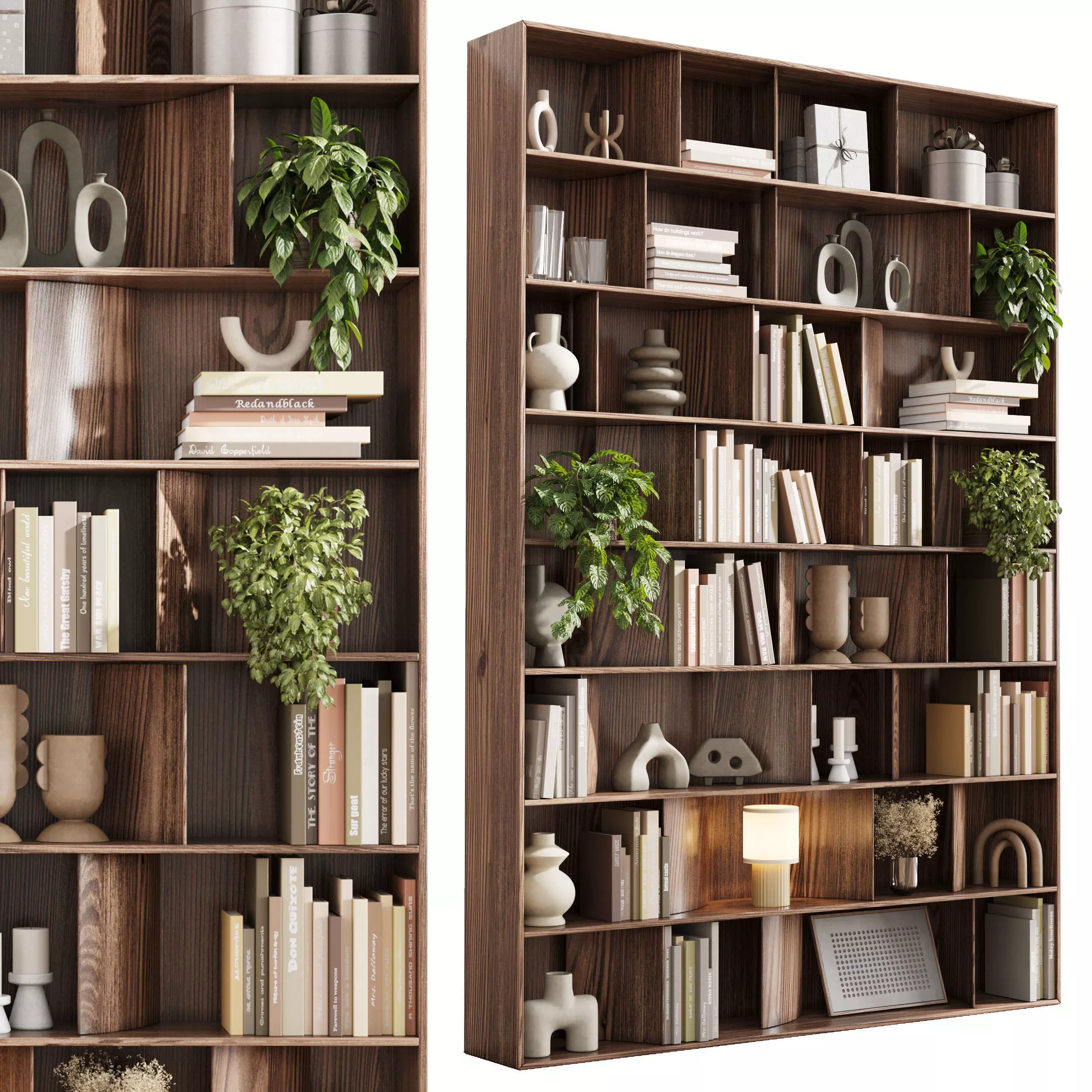 wooden Shelves Decorative With Plants and Book - Wooden Rack