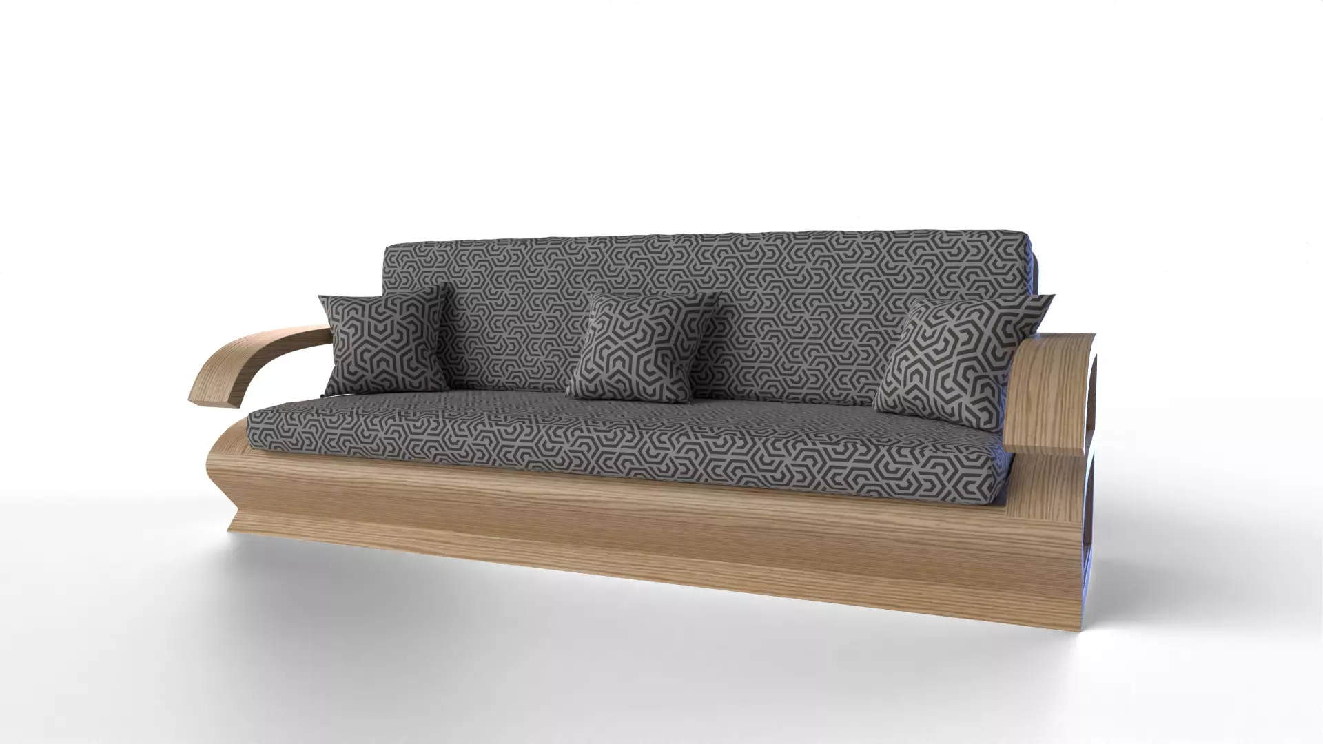 Modern Wooden Sofa with Patterned Upholstery 3D model