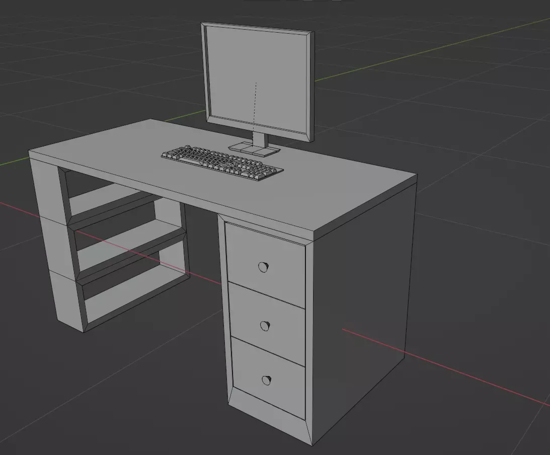 The model has material settings that define how surfaces look (color, shine, transparency, etc.).