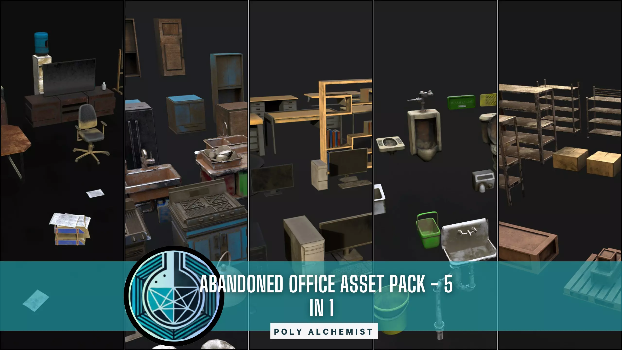 An asset pack containing various different assets that can be used to decorate or design an Abandoned Office - Conference Room, Kitchen, Work Area, Restroom And Storage Area . This pack contains 156 fully textured props in total.