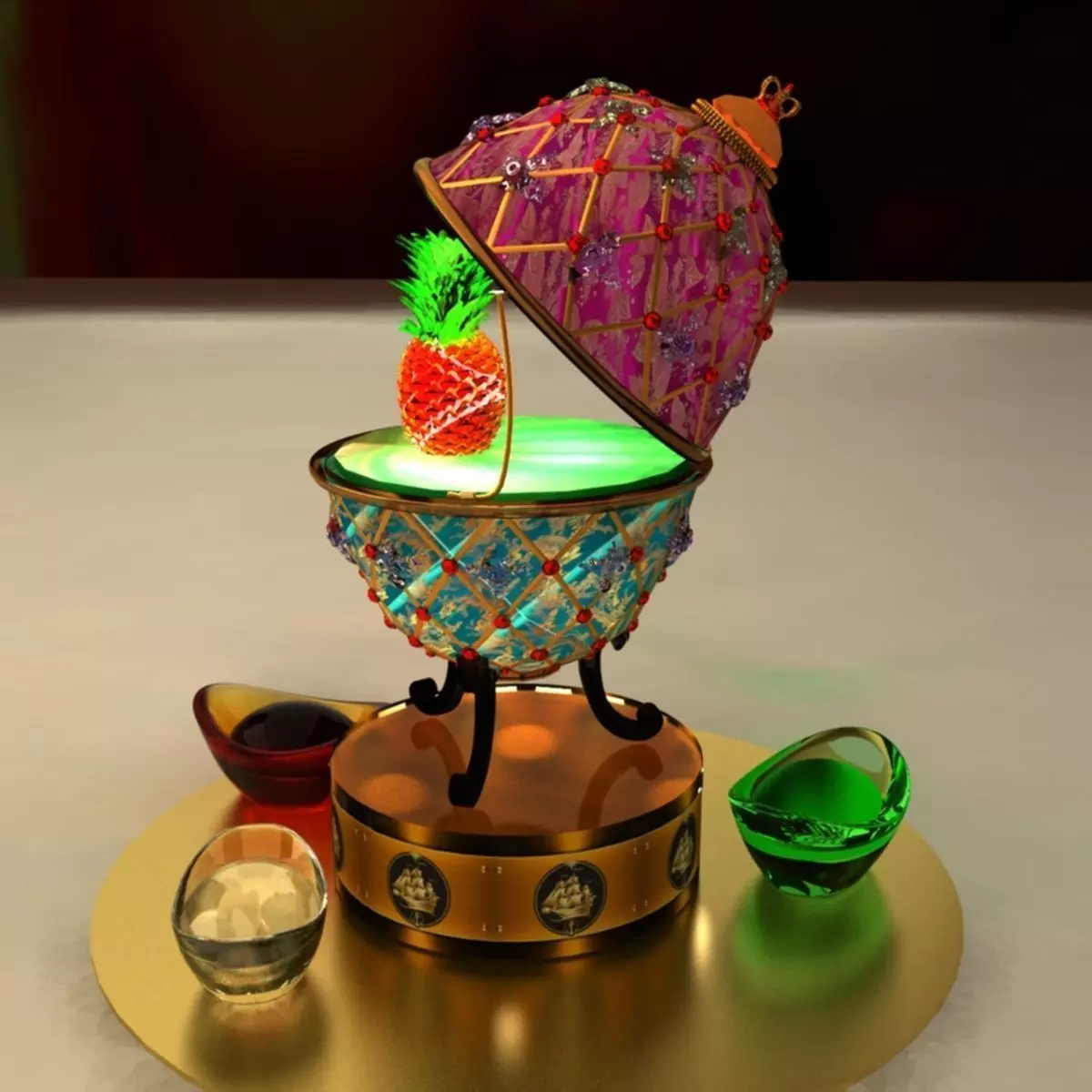 Chinese gold Ingot(Yuan Bao) and egg led light 3D models created in 3D Max.(.max,.obj,.stl) . All scene and texture map are included in Zip file. All scene are rendered by VRay.chinese_yuanbao_egg_lightB.rarAvailable files: