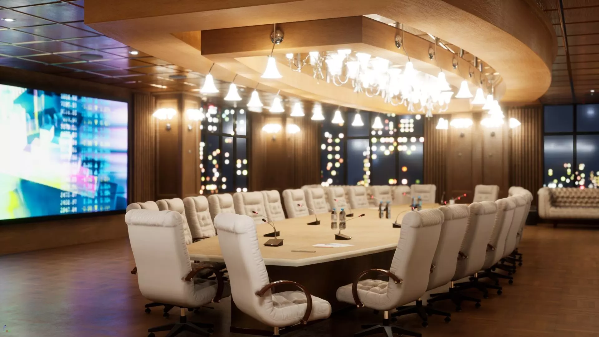 Key featuresThis UNREAL ENGINE asset will perfectly fit any PC project that requires a quality Conference Room interiorwith TV screen showing video. The city in background is actual 3d model, adding parallax effect for more realism.You can change the color mood of the scene to your liking - there is color option in wood materials.The asset is modular so you can edit or make your own variants.Make the interior smaller or bigger, add more TV screens and change thevideos to your own.