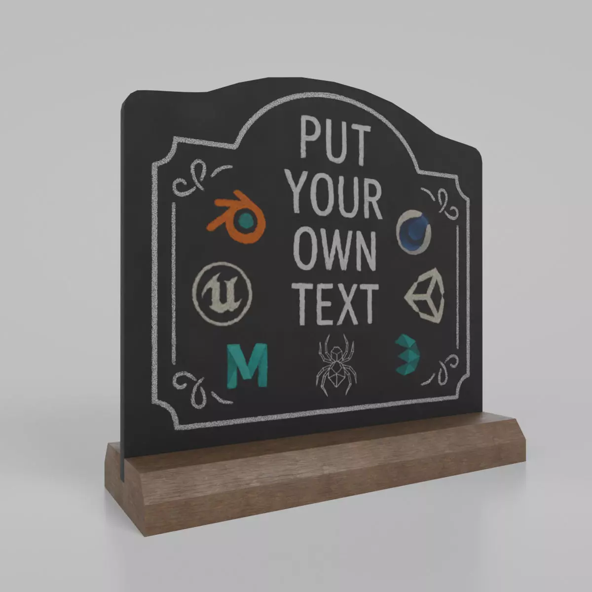 • A fully customizable chalkboard surface—perfect for adding your own text or illustrations.• High-resolution board and handcrafted wooden base.• Clean quad-based topology and real-world scale.• Organized object hierarchy and correctly placed pivot point.• Game-ready and render-ready — suitable for offline and real-time engines.