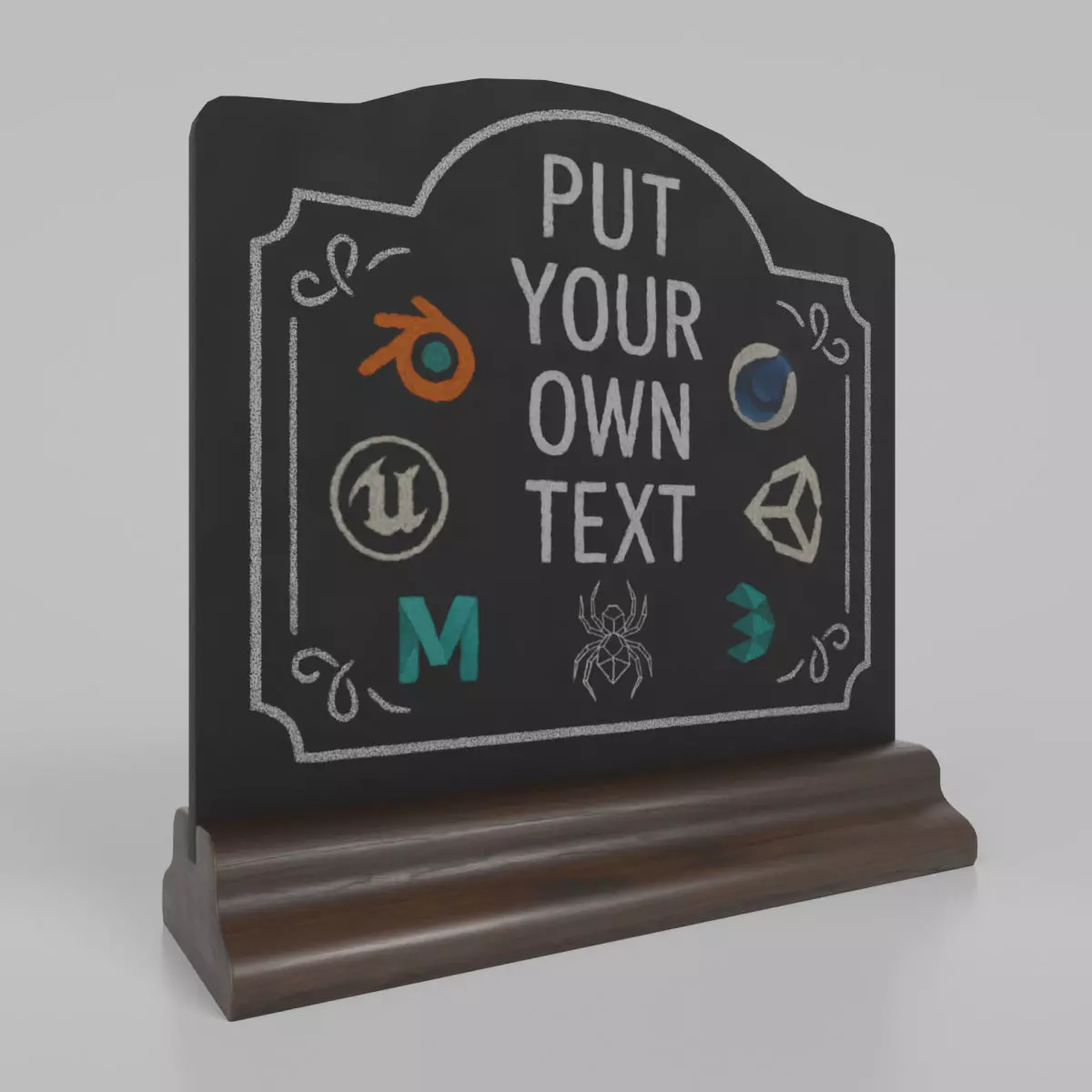 • A fully customizable chalkboard surface—perfect for adding your own text or illustrations.• High-resolution board and handcrafted wooden base.• Clean quad-based topology and real-world scale.• Organized object hierarchy and correctly placed pivot point.• Game-ready and render-ready — suitable for offline and real-time engines.