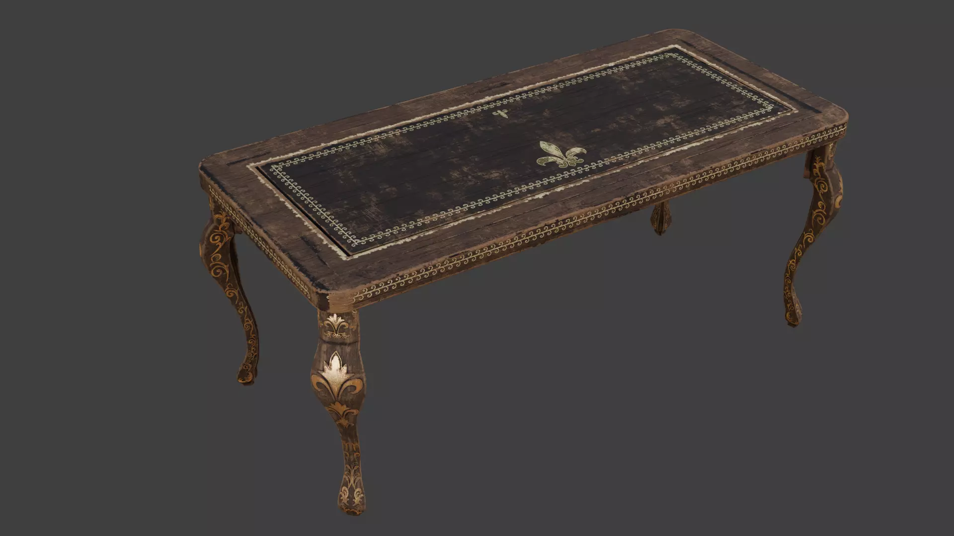 A timeless piece that seamlessly blends classic charm with opulent details. This vintage desk boasts intricately designed golden accents, adding a touch of luxury to its overall aesthetic. The ornate detailing extends to the beautifully crafted legs, enhancing the desk's regal presence. With its perfect fusion of vintage allure and lavish gold embellishments, this desk becomes a statement piece in any space, offering a touch of sophistication to your decor.