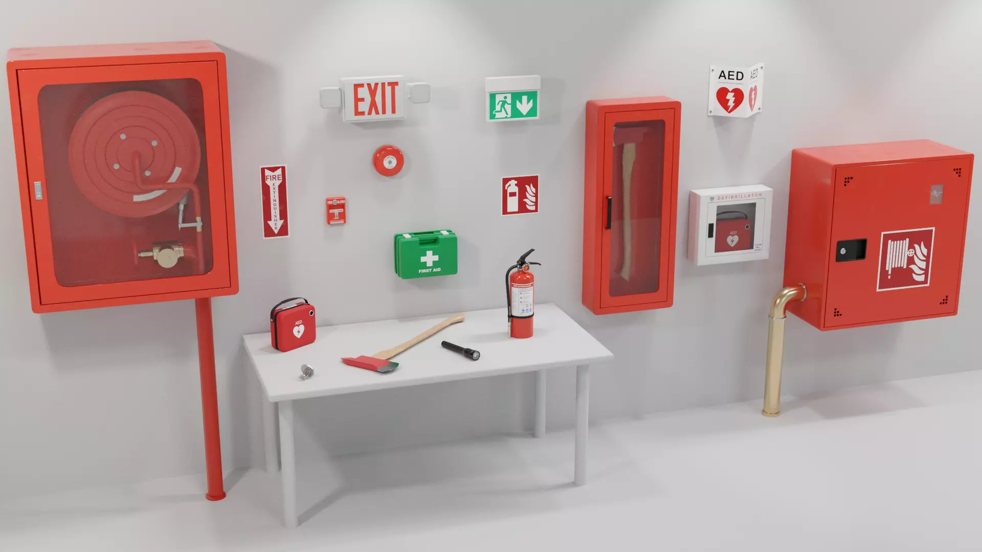 Collection of 17 low-poly optimized tools and signs regarding fire and safety optimized for games. Contains several commonly used items that are often seen in office spaces and buildings in general. PBR maps available with 2k and 4k resolution. For memory efficiency some maps contain UVs of more objects: 17 tools are mapped to 9 sets of 2k/4k maps.Providing Unity prefab asset lib for easy game integration!