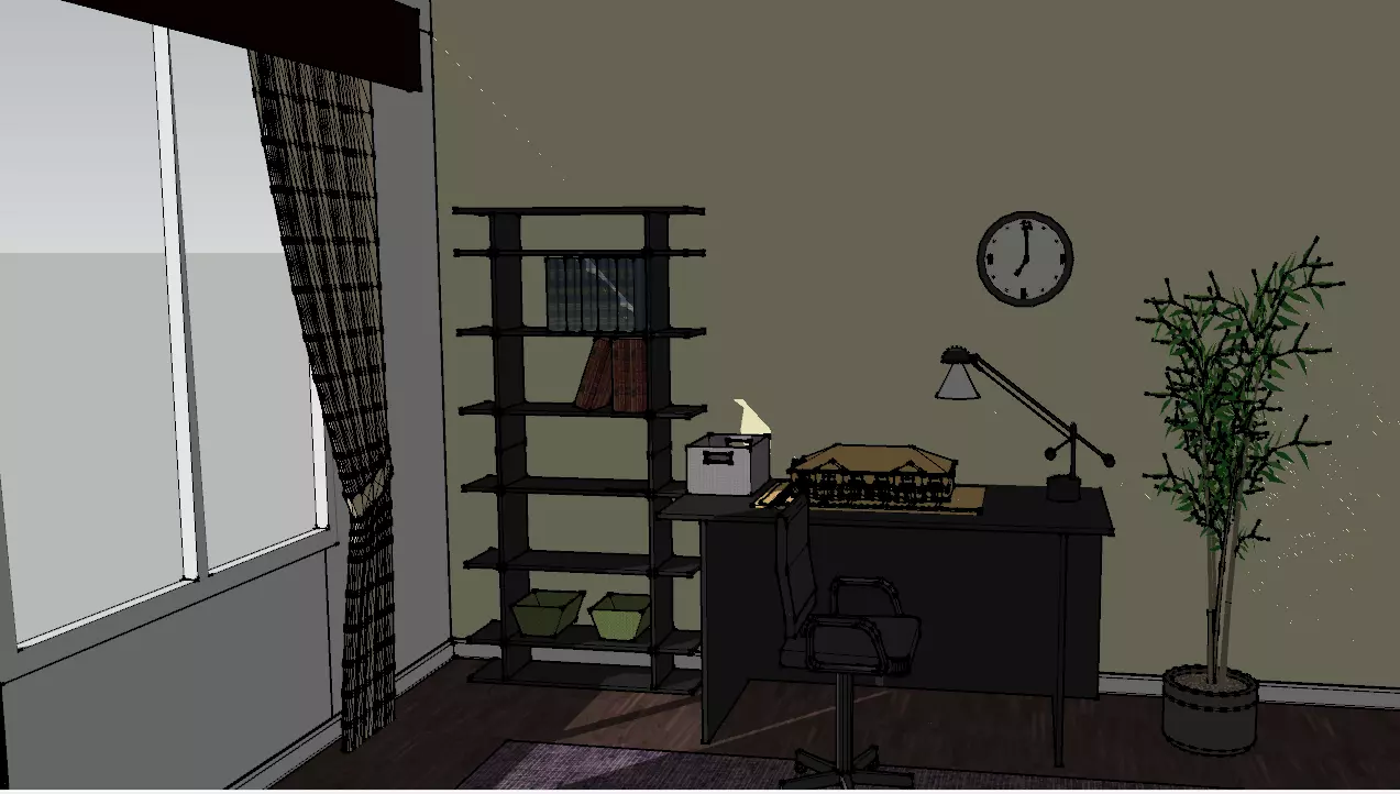 SUMMARY:Simple Home office with Architectural scaled model on the desk