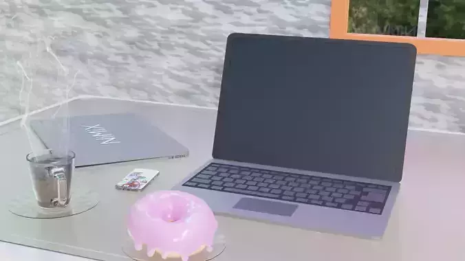 The model has material settings that define how surfaces look (color, shine, transparency, etc.).