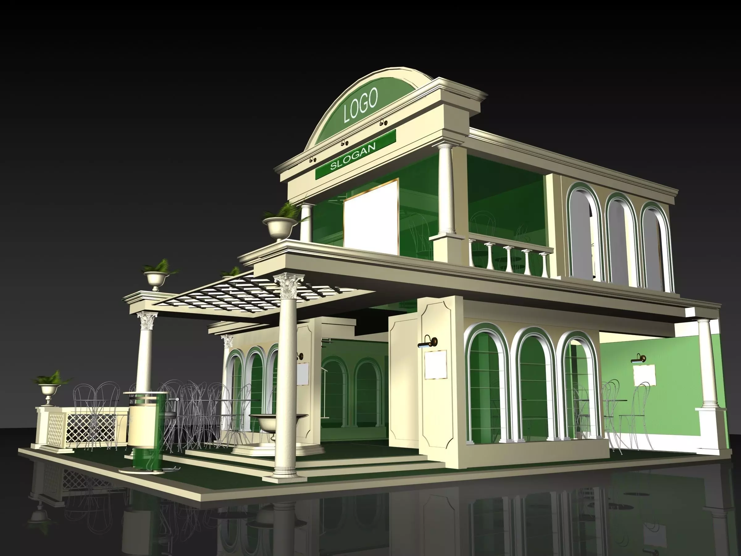 The model has material settings that define how surfaces look (color, shine, transparency, etc.).