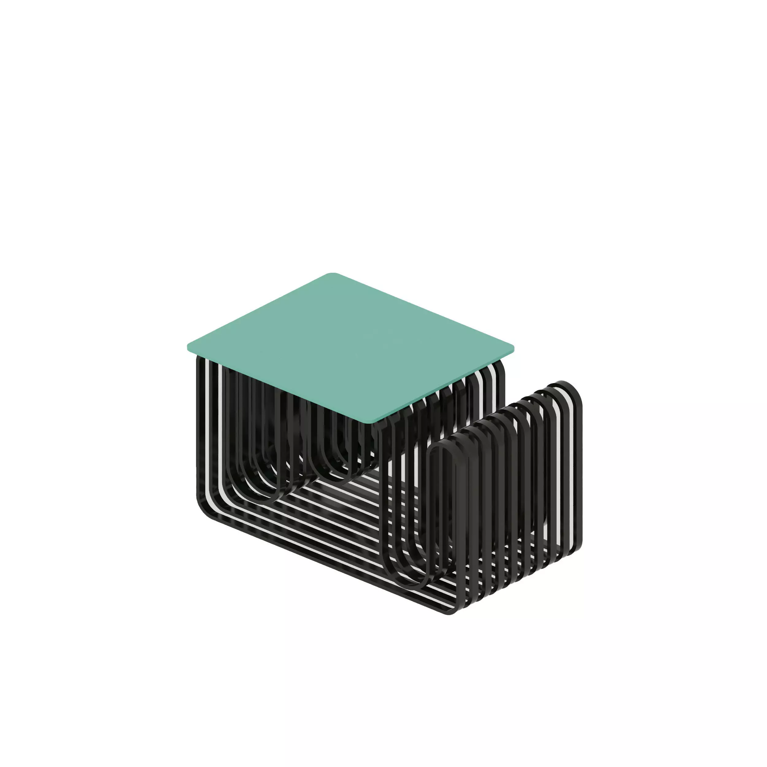 This modern metal side table stands out with its minimalist and industrial design approach. Featuring black metal tubes and a pastel green square tabletop, it is a stylish and functional piece of furniture. This model is ideal for living rooms, libraries, and modern office designs.