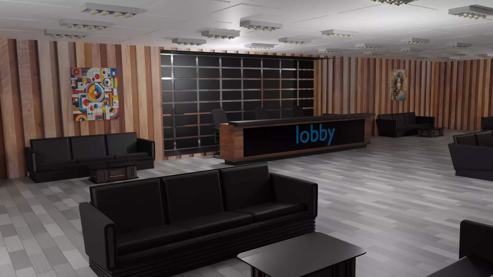 Lobby Interior. Blender, Fbx, Obj, Stl and Gltf file are available.It is designed to be used in every field, including games.Textures are embedded in fbx.Textures are also embedded in Blender and Gltf files.