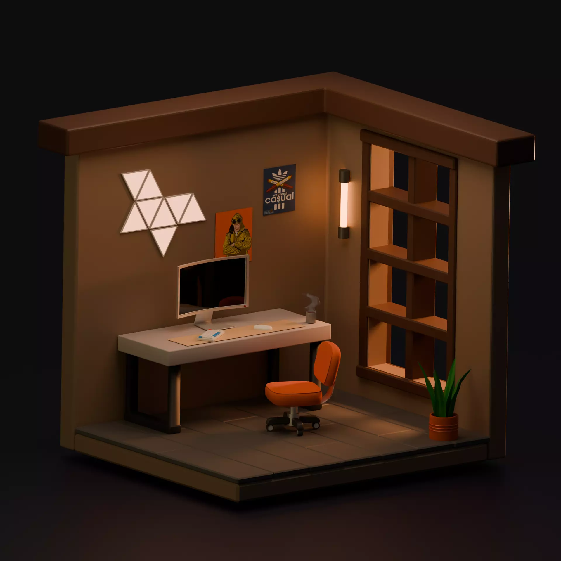 his is a low poly interior room, optimized for game engines (Unity, Unreal Engine). Perfect for game environments, VR/AR projects, and 3D visualization.Low poly, game readyPBR materials includedModular design for easy customizationFormats: FBX, OBJ, GLTF, BLENDReal-world scaleIndie gamesMobile/VR projectsArchviz stylized scenesAll textures are optimized for real-time rendering, making it lightweight and easy to integrate into your projects.
