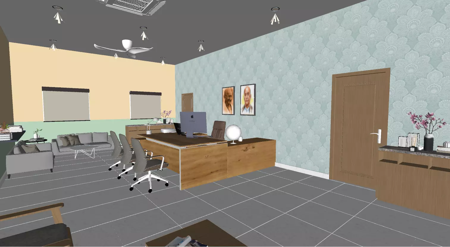 The model has material settings that define how surfaces look (color, shine, transparency, etc.).