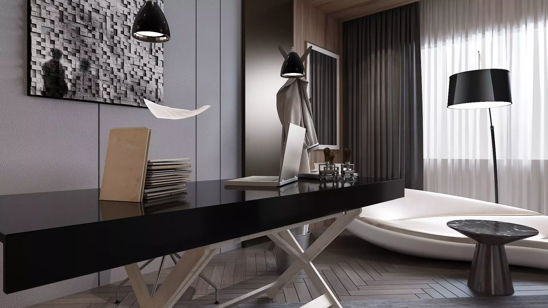 The model has material settings that define how surfaces look (color, shine, transparency, etc.).