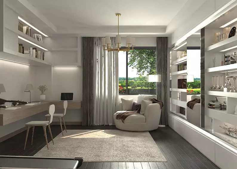 This is a photorealistic 3D model of a modern study room interior, created with 3ds Max and rendered using V-Ray. The scene combines elegance and functionality, making it an excellent choice for architectural visualization projects. It includes detailed furniture, decor objects, and natural lighting setup for a realistic and professional presentation.
