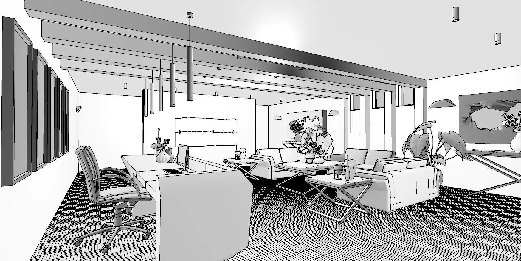 The model has material settings that define how surfaces look (color, shine, transparency, etc.).